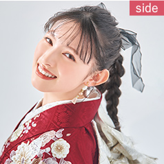 - 両サイドに違う髪飾りを着けてイメージをチェンジ。シアー感のあるリボンがおしゃれ。
