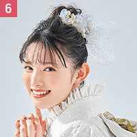 大きな白の髪飾りが顔周りを明るい印象に。透明感もア~ップ!